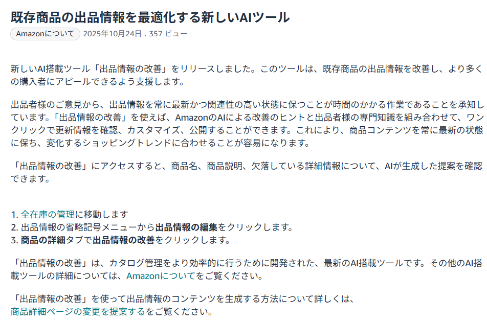 Amazon販売 既存商品の出品情報を最適化する新しいAIツール