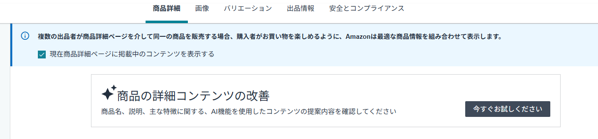 - 商品の詳細タブで出品情報の改善をクリック