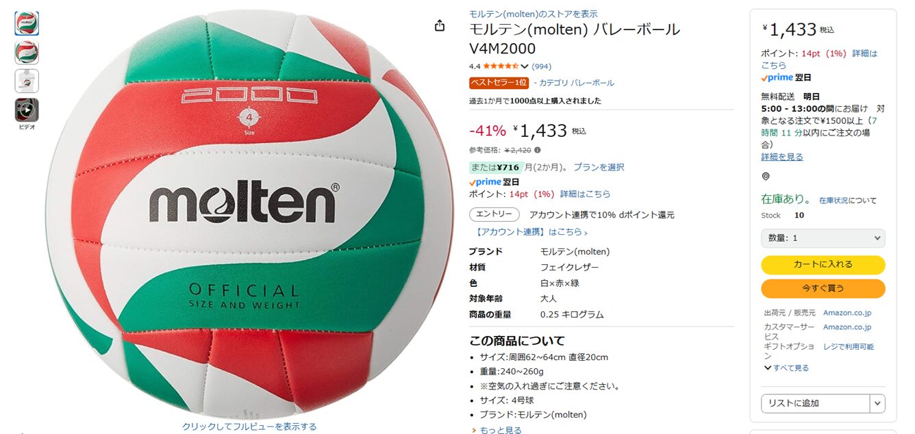 商品販売する際に商品登録からSKU(管理番号)を複数登録すれば、このバレーボールの商品ページに対して何個も同時に出品することができます。