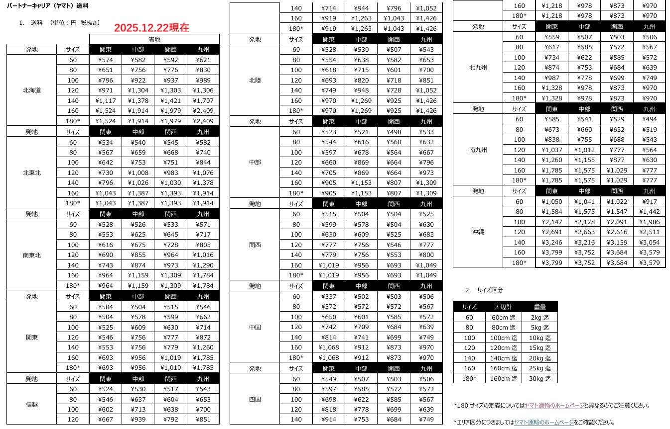 パートナーキャリア(ヤマト送料)2025.12.22現在