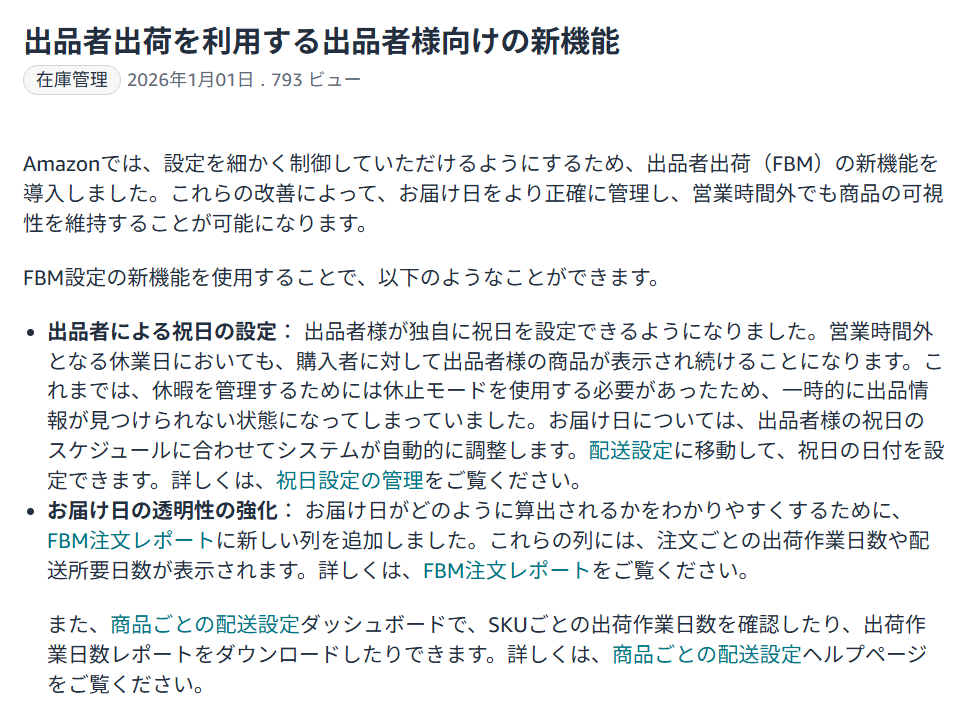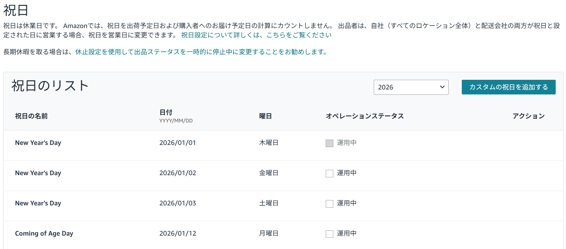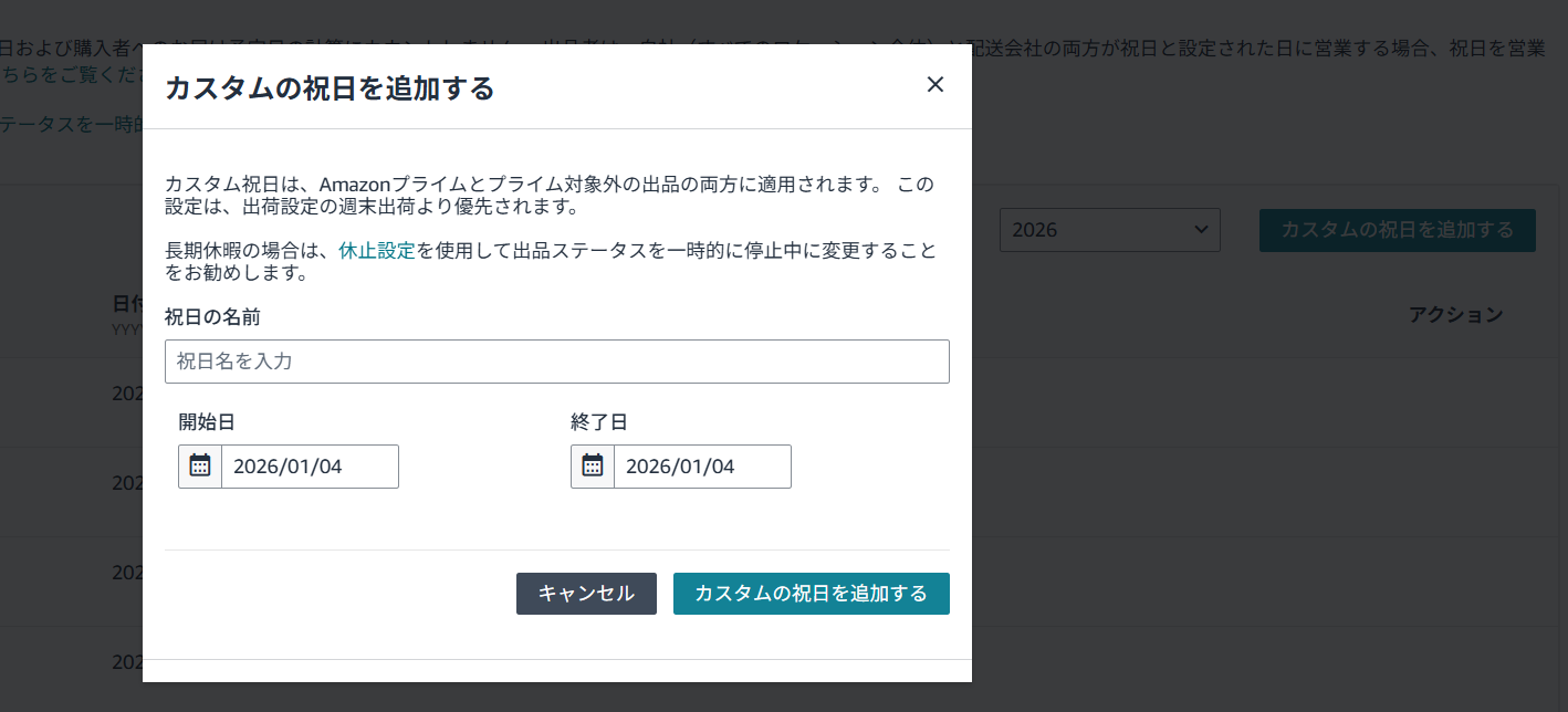 Amazon販売 出品者出荷の独自祝日設定できる新機能が良い