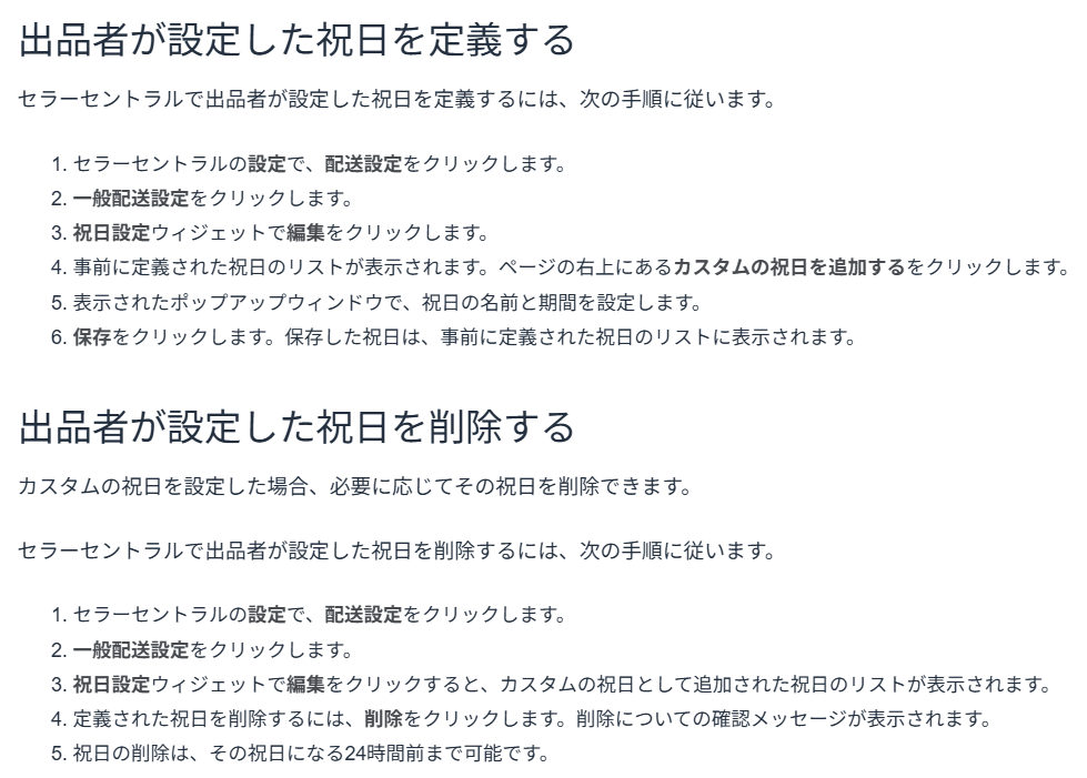 出品者出荷をする販売者向けの新機能について、特に良いと思ったのが、出品者独自の祝日設定ができるようになった点です。